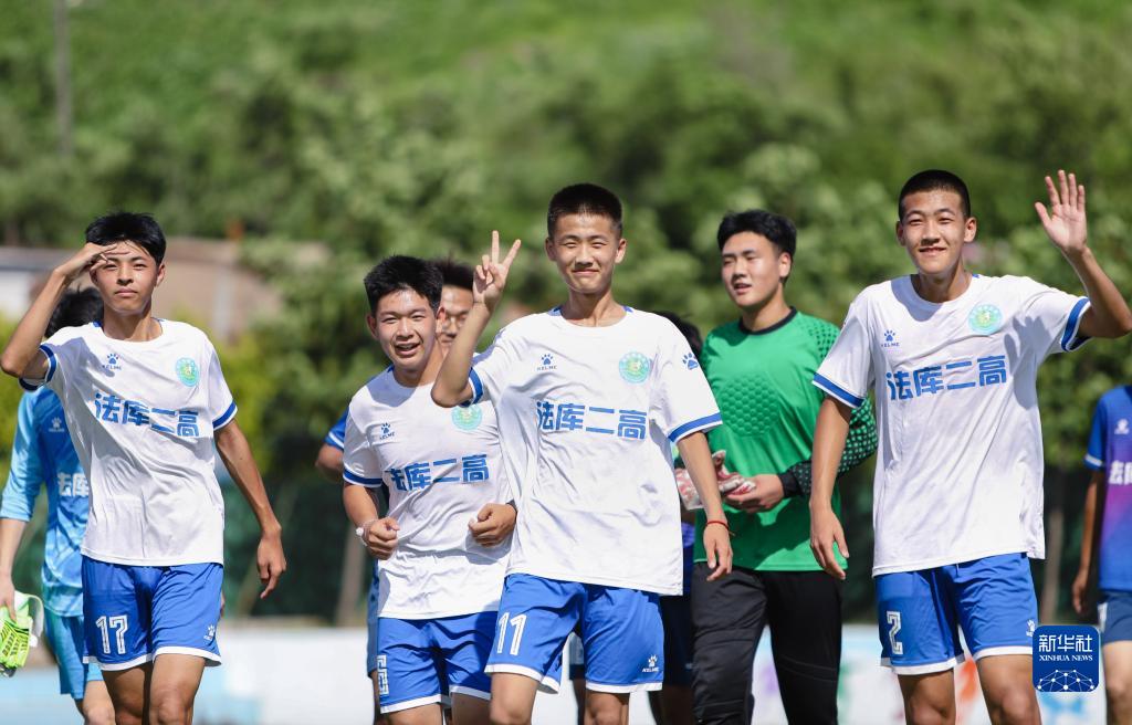 7月14日,在遼寧省沈陽市法庫縣第二高級中學,男足隊員在訓練賽后。新華社記者 王乙杰 攝