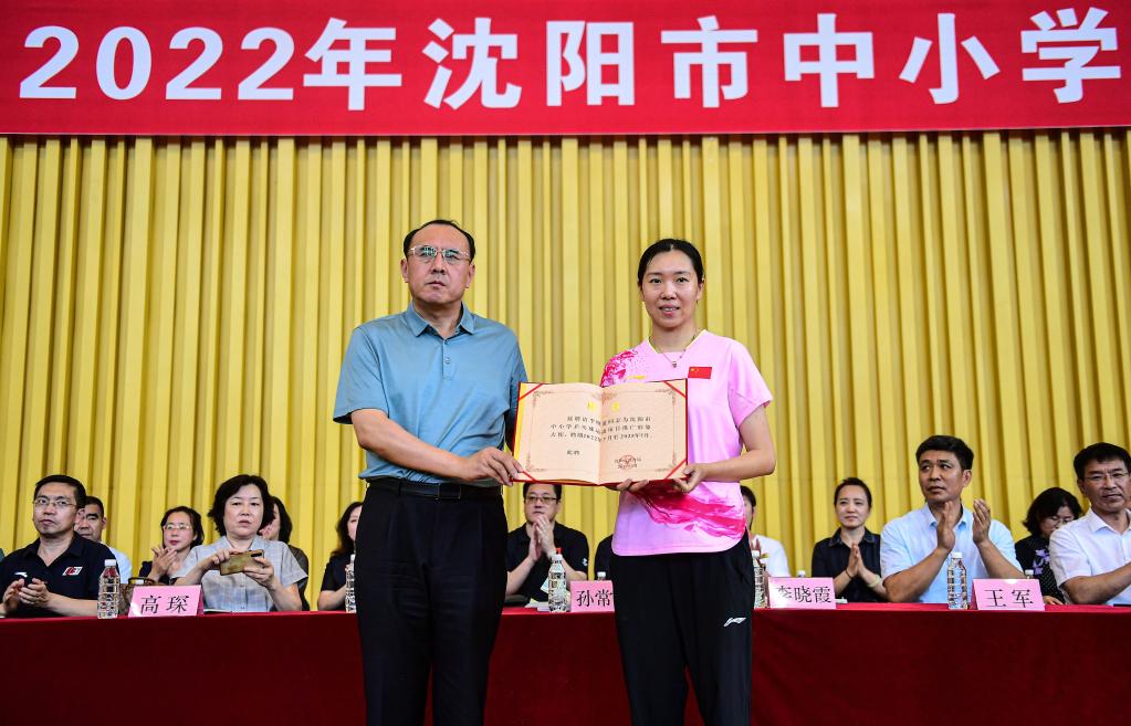 為進一步增強賽事品牌的影響力和知名度,比賽組委會還特邀乒乓球名將、奧運冠軍李曉霞作為沈陽市中小學乒乓球運動項目推廣“形象大使”來到現場,為隊員示范指導、為比賽開球,讓孩子們切身感受世界冠軍的風采和魅力,旨在將奧運精神向校園延伸,讓師生零距離接受世界頂級水平專業化指導的同時,讓體教融合落地生根,用實際行動在孩子們心中點燃體育的火種。