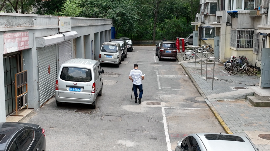 趙強從小患有多發性骨軟骨瘤,導致雙腿長度相差24 厘米。在嘗試過各種行走方式后,趙強最終在鞋底固定一個小板凳。