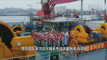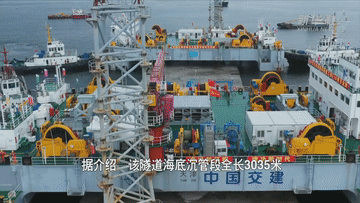 據介紹,該隧道海底沉管段全長3035米,由18節沉管組成。本次安裝的E18管節施工水域狹窄、系泊工藝復雜,是全線安裝難度最高的管節。項目團隊多次優化錨系布設方案和系泊流程,為管節順利安裝掃清了障礙。