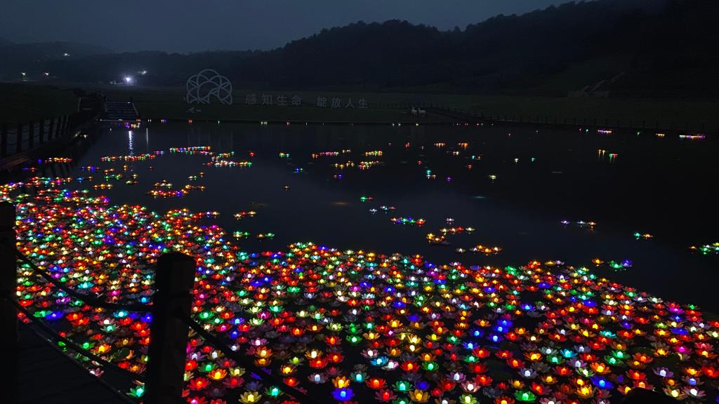 遼寧觀陵山藝術園林中元節放祈福荷燈現場。(受訪單位供圖)