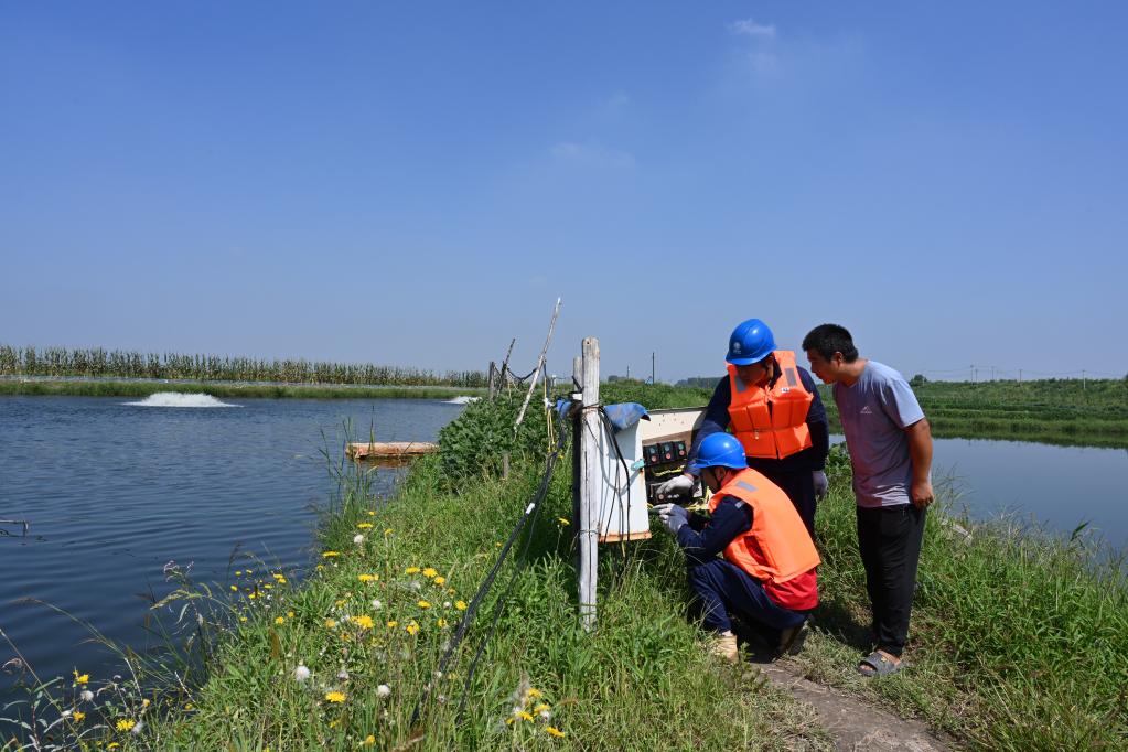 圖為國網鞍山供電公司員工對養蝦池的線路、設備進行檢修。(國網鞍山供電公司供圖)
