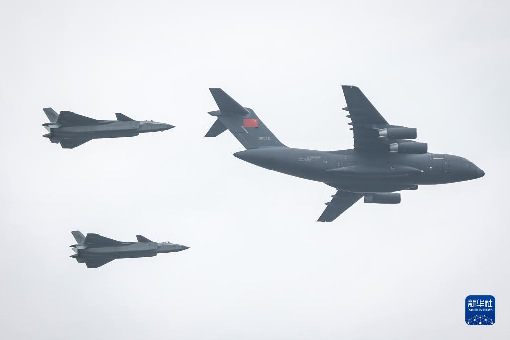 9月16日,空軍兩架戰斗機為護送烈士遺骸的專機護航。新華社記者 潘昱龍 攝