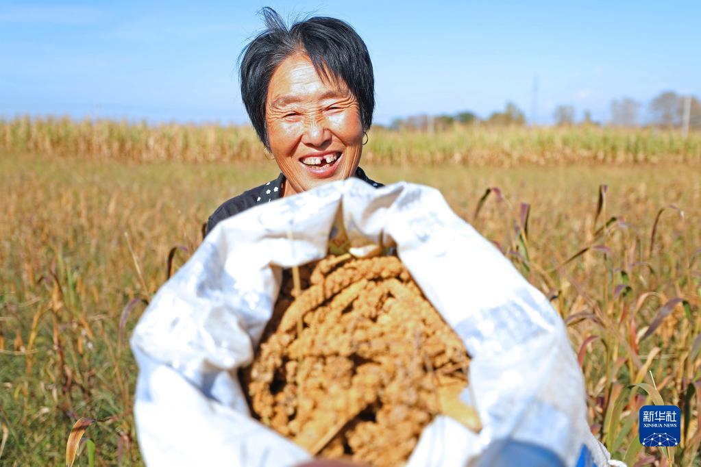 沈陽市康平縣方家屯鎮,康平紅薯、蘋果、小米等特色地標農產品豐收在望,農民在田間果園采摘勞作。