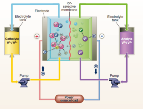 全釩液流電池工作原理示意圖。(中科院大連化學物理研究所供圖)