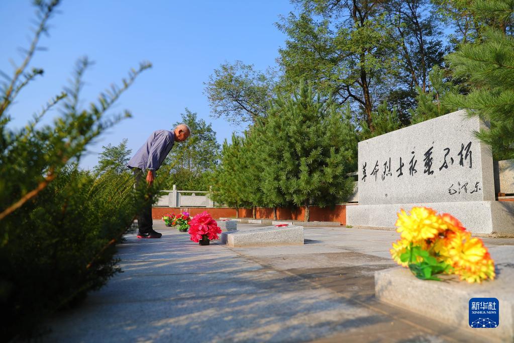 9月26日,葛均臣來為濱江村革命烈士陵園敬獻鮮花。新華社記者 楊青 攝