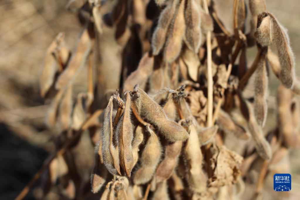 1月7日在法庫縣依牛堡子鎮崔家屯村拍攝的成熟大豆豆莢。新華社記者 楊青 攝