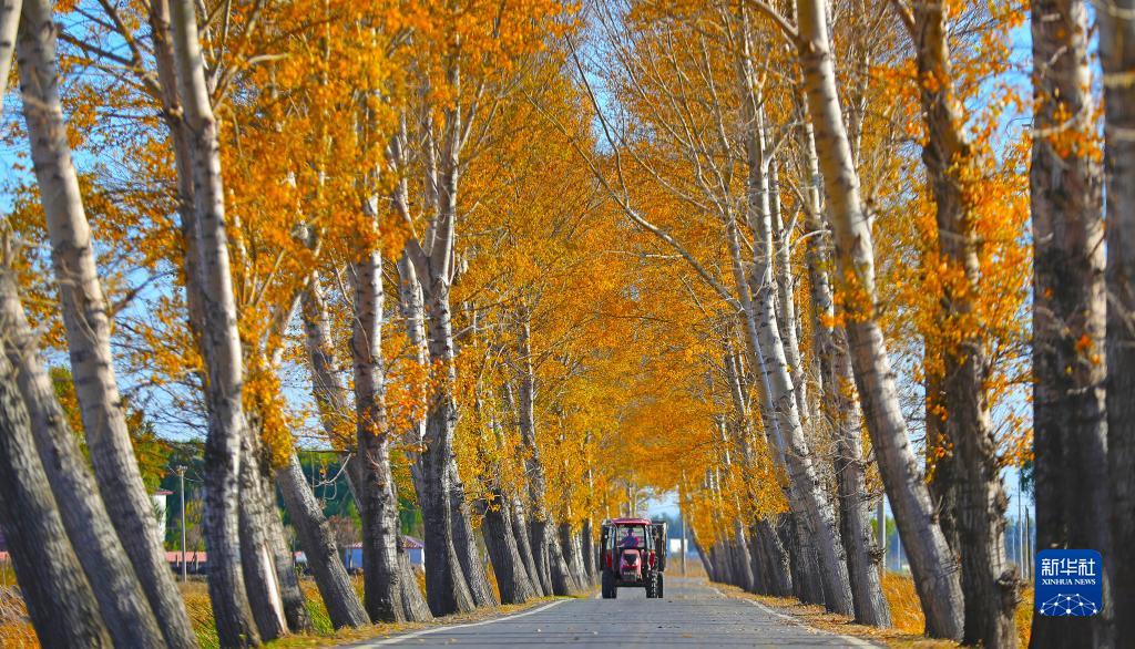 10月18日,在遼寧沈陽市沈北新區興隆臺鎮青年農場,車輛在運送剛收割的水稻。新華社記者 楊青 攝