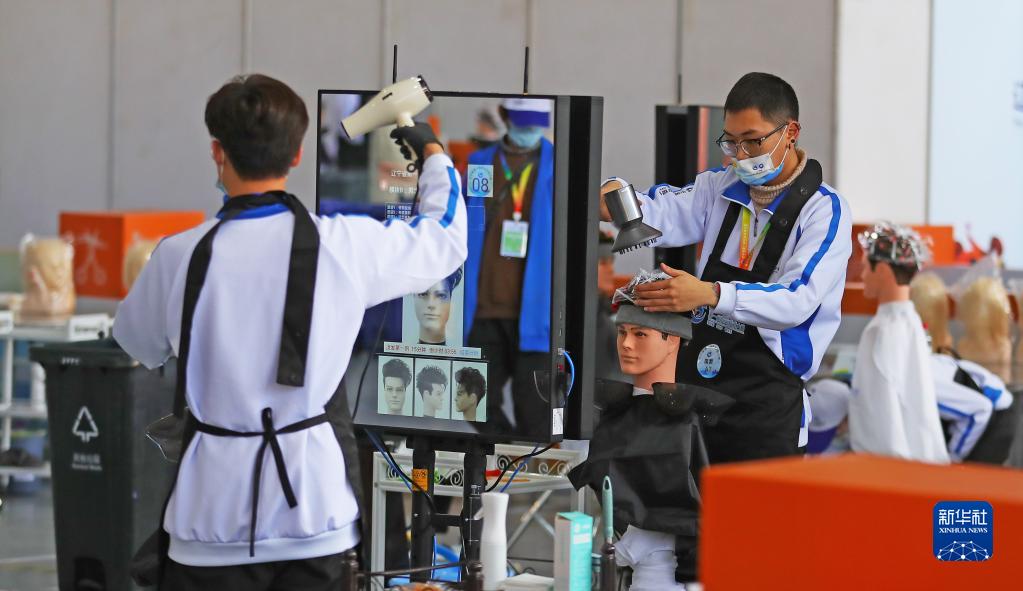 10月27日,參賽選手參加美發項目比賽。新華社記者 楊青 攝