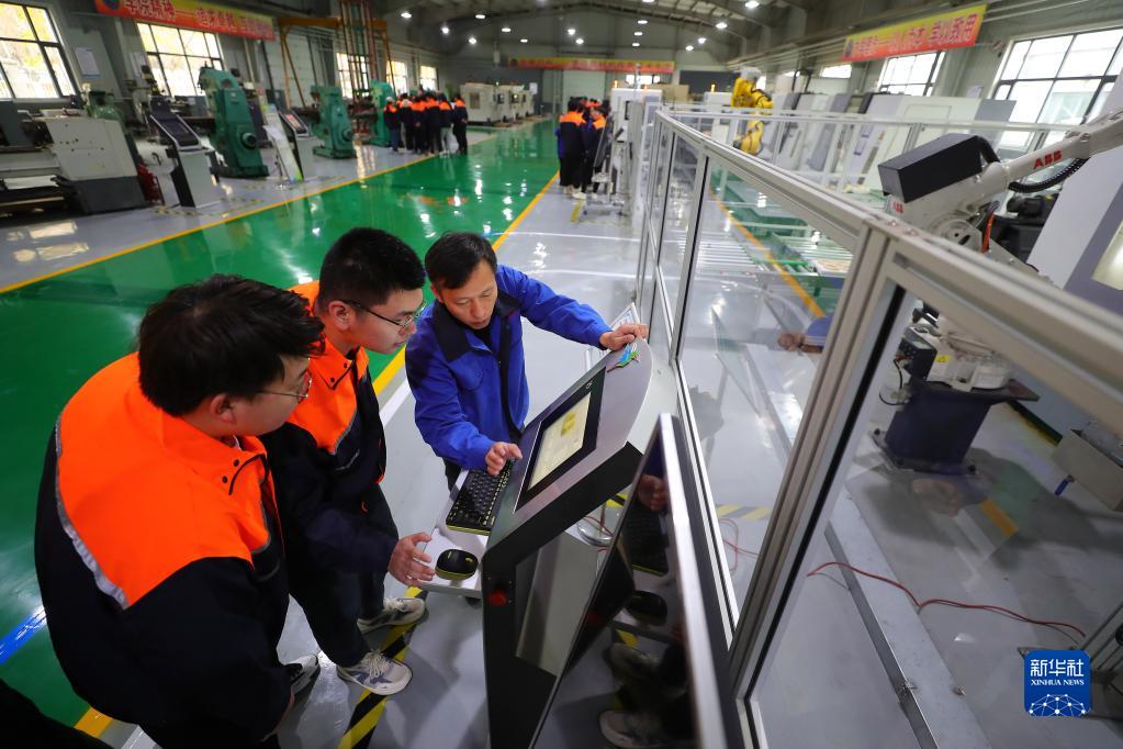 11月2日,在沈陽工學院智能制造實訓中心,機械電子工程專業學生進行葉輪柔性自動化加工實訓。新華社記者 楊青 攝