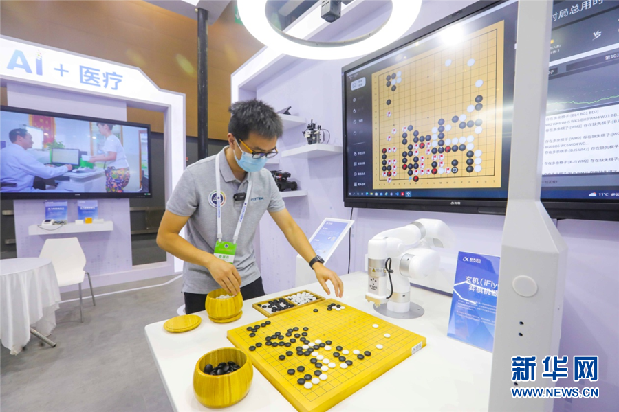圖為工作人員向觀眾展示智能機器人在圍棋領域的應用。新華網夏銘陽攝