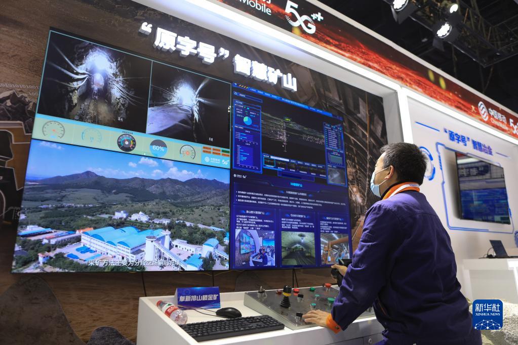 11月7日,參會企業工作人員展示5G賦能智慧礦山項目。新華社記者王乙杰 攝