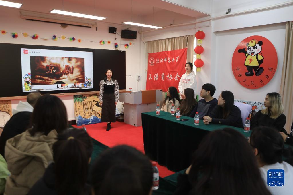 11月16日,幾位留學生參加學校漢語角協會組織的京劇主題社團活動。新華社記者 王乙杰 攝
