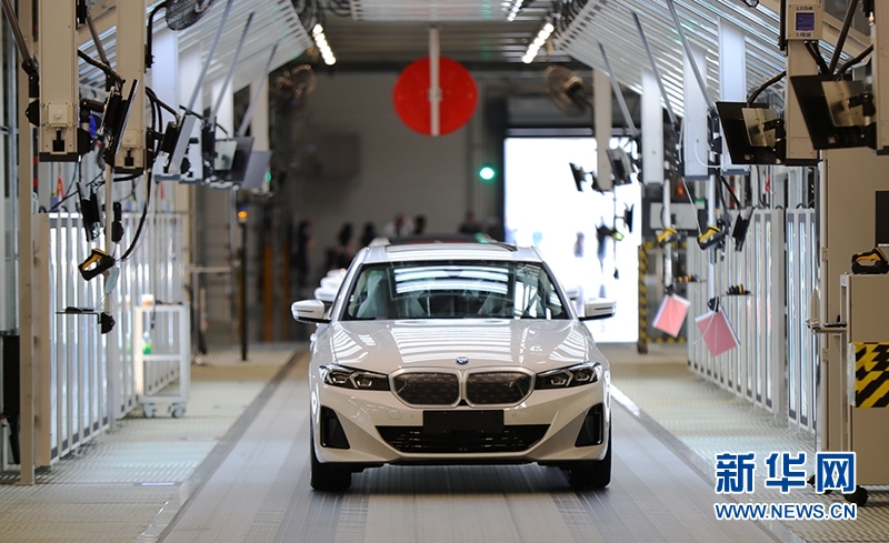 在華晨寶馬沈陽里達工廠拍攝的全新BMW i3汽車(2022年6月23日拍攝)。新華社記者 楊青 攝
