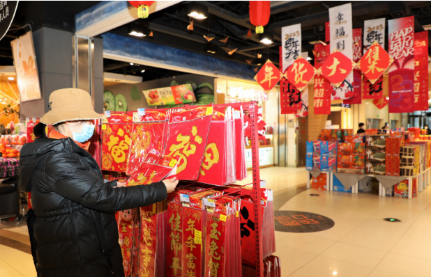 新華網沈陽1月4日電 春聯、福字、大紅燈籠以及各種年貨禮盒……近日,走進中興超市,生鮮、酒水和糖果區域吸引了眾多消費者光顧,濃濃的節日氣氛撲面而來。