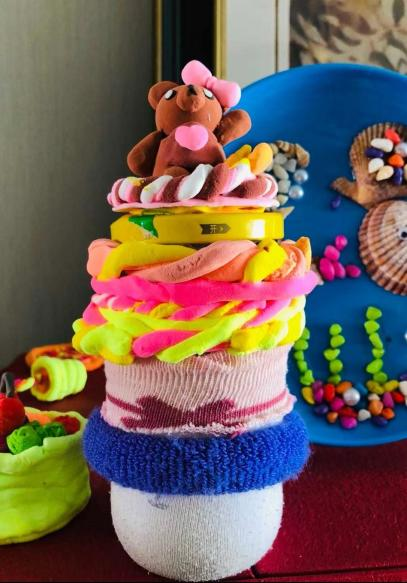 飲料瓶、紙板箱、穿過的舊衣服等生活中隨處可見的廢舊物品,也在學生們的奇思妙想下,融合科學、美術等知識巧手一改,變成了一件件精美的裝飾品。