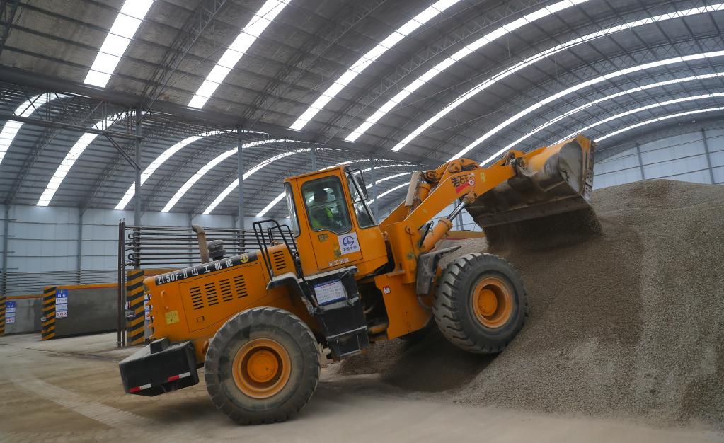 在中鐵本桓高速六工區料倉,施工車輛在進行作業。新華社記者 楊青 攝