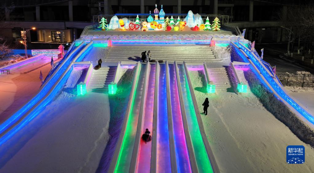 1月3日,游客在沈陽奧體中心冰雪嘉年華體驗雪圈項目(無人機照片)。新華社記者 楊青 攝