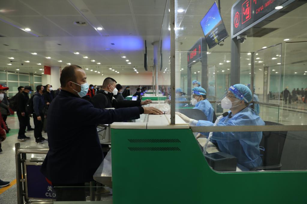 大連周水子出入境邊防檢查站為入境旅客辦理手續。(受訪者供圖)