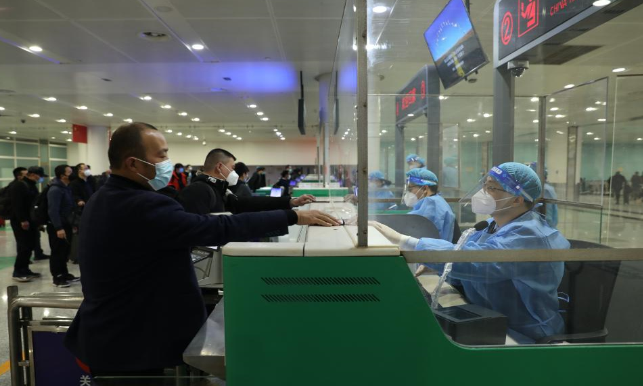 大連周水子出入境邊防檢查站為入境旅客辦理手續。2023-01-09 08:52:03 星期一 -
