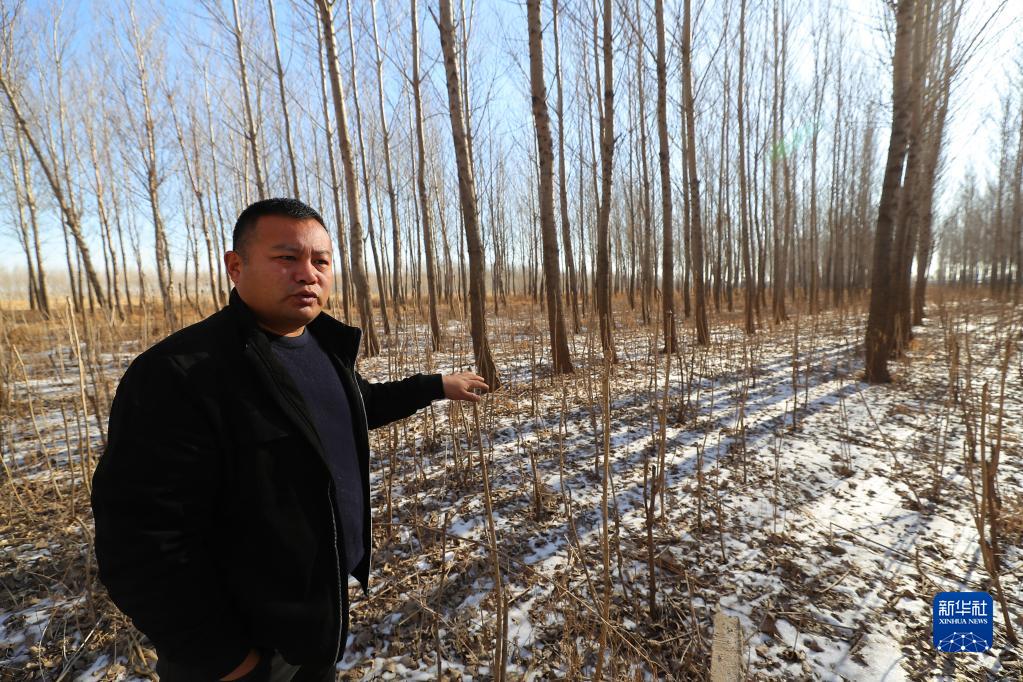 1月9日,在新民市市郊,農民將刺嫩芽樹栽種在林下。新華社記者 楊青 攝