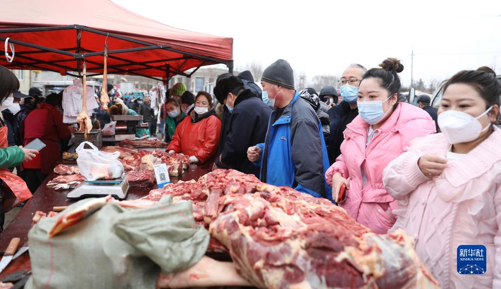 1月12日,市民在蒲河大集上挑選采購鮮驢肉。新華社記者 姚劍鋒 攝