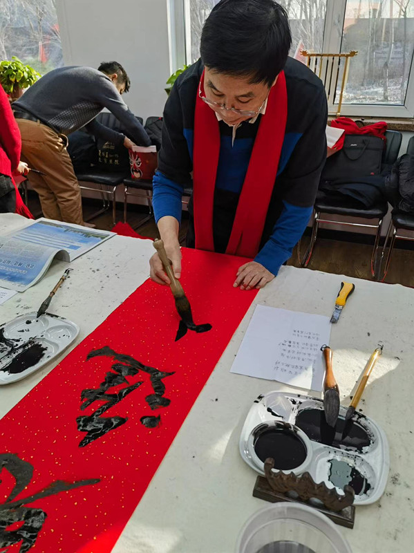 在溪林社區活動室,十五位遼寧書畫家現場揮毫潑墨,一筆一畫間或豪放灑脫、或清新雋秀,一幅幅飄著墨香、飽含祝福的對聯和“?!弊?,傳遞著濃濃的年味,讓居民感受到喜慶的節日氛圍。
