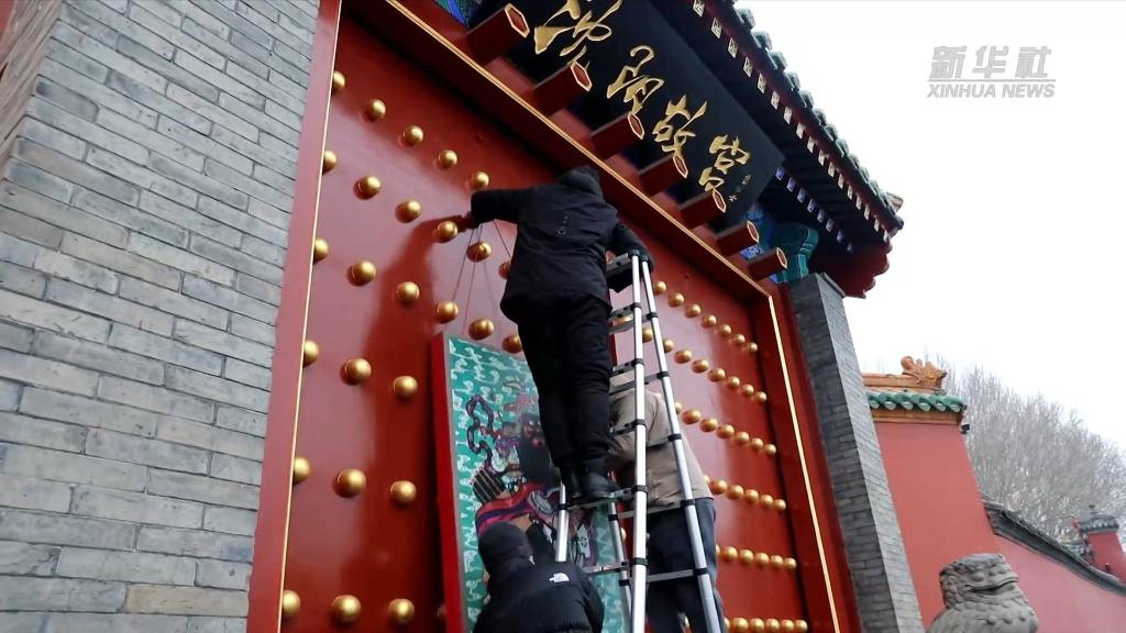 貼春聯、掛門神、寫福字,這些春節的傳統習俗貫穿古今,臘月二十三,沈陽故宮在東大門掛起門神,迎接新春。