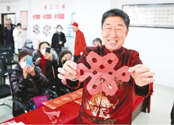 非遺傳承人馮元平將剪紙作品送給了現場群眾。本報記者 孫海濤 攝