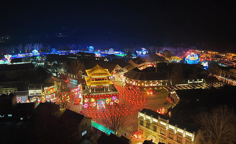 燈會以“夢幻”“潮玩”“復古”為主題,以關東影視城建筑為依托,將花燈與影視城內建筑、演藝表演、生肖元素、萬家燈火概念巧妙融合,形成了城中有燈、燈中有景、景中有演藝的奇妙效果。