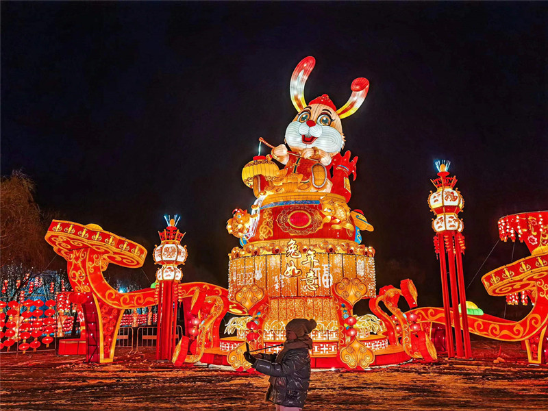 值得一提的是,各種兔子彩燈也成為了2023沈陽迎春燈會的亮點?;顒蝇F場,一組名為《兔年如意》的彩燈,吸引眾多市民駐足觀看。憨態可掬的兔子、中國鼓、糖葫蘆、如意……多種傳統元素恰到好處地結合為游客送來了滿滿的新春祝福。