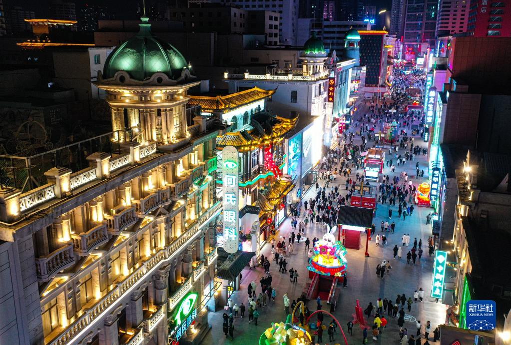 1月25日,市民在沈陽中街商業街上休閑購物(無人機照片)。新華社發
