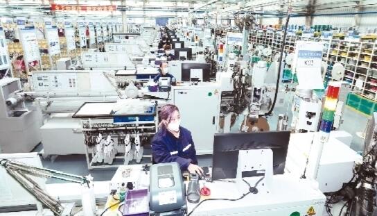 位于丹東的遼寧思凱科技股份有限公司工人正在抓緊生產趕訂單。 記者 王盧莎 攝