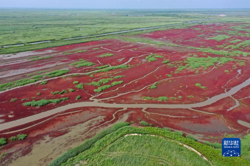 圖為遼河入??谂约t海灘。 新華社記者 姚劍鋒 攝