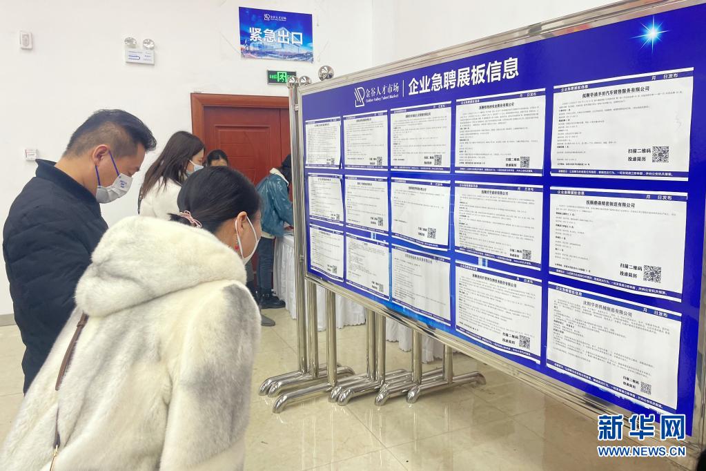 招聘會上,求職者在企業急聘展板前尋找崗位信息。(新華社記者武江民 攝)