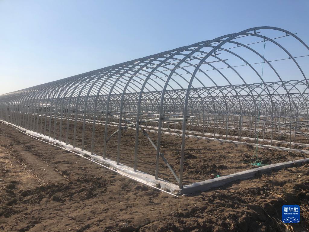 2月6日,東古城水稻專業合作社新建的一座百米育秧大棚鋼骨架。(新華社記者鄒明仲 攝)