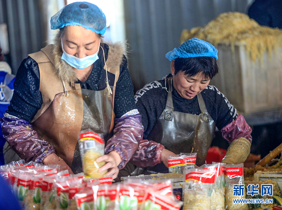 圖為酸菜加工車間內,工人將腌制好的酸菜取出,準備裝袋。新華網 夏銘陽 攝