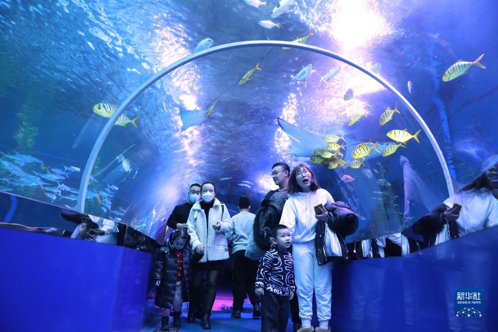 2月11日,小朋友們跟隨家長在沈陽皇家海洋樂園里參觀。新華社記者 姚劍鋒 攝