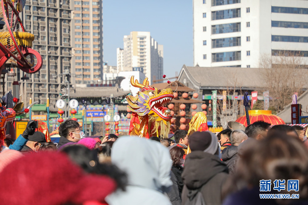 2月21日,市民在沈陽老北市景區賞舞龍,感受節日氛圍。