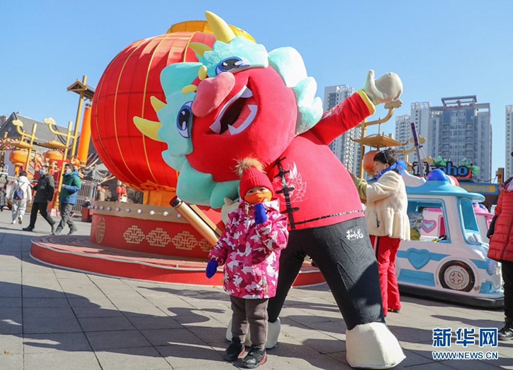 2月21日,市民與龍抬頭文化節吉祥物“和小龍”合影留念。 新華網 唐曉瑭攝