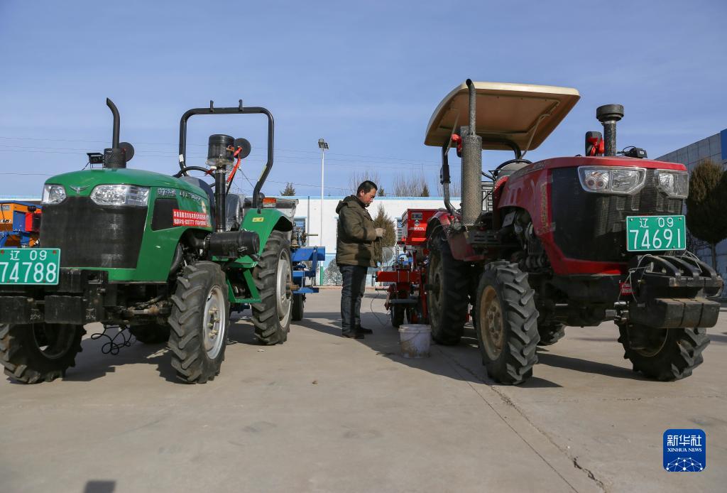 2月23日,技術人員在阜新蒙古族自治縣老河土鎮為村民檢修農機。新華社記者 龍雷 攝