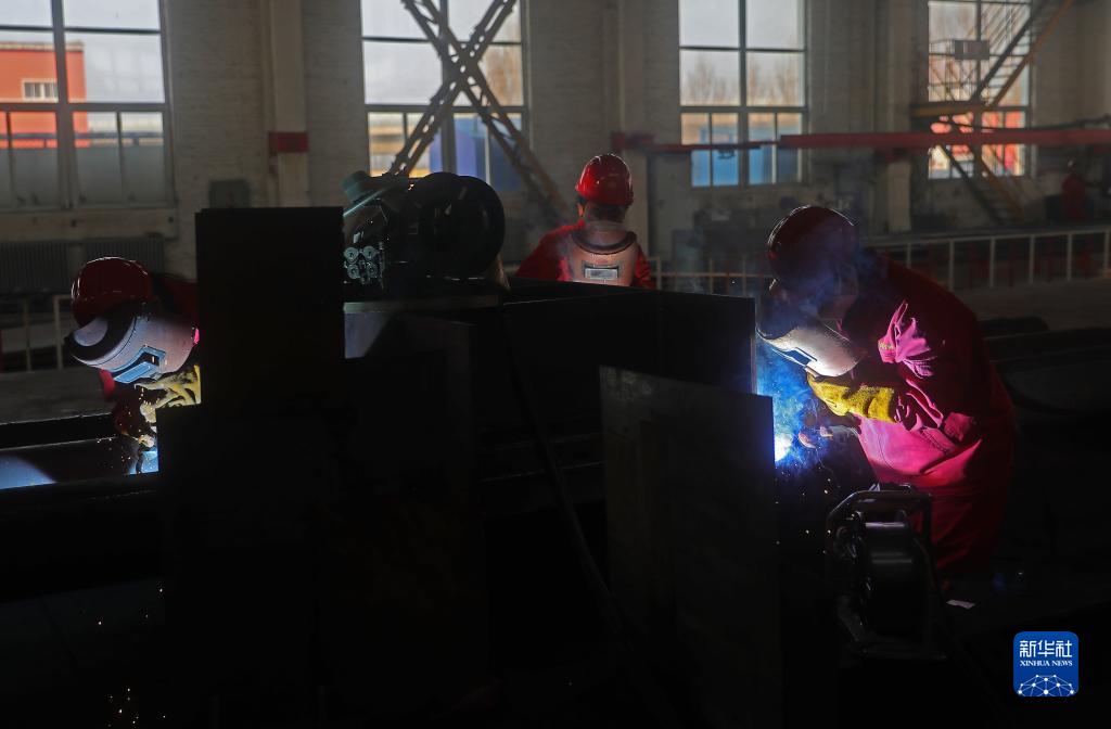 2月27日,女子焊工班成員在焊接車間作業。新華社記者 楊青 攝