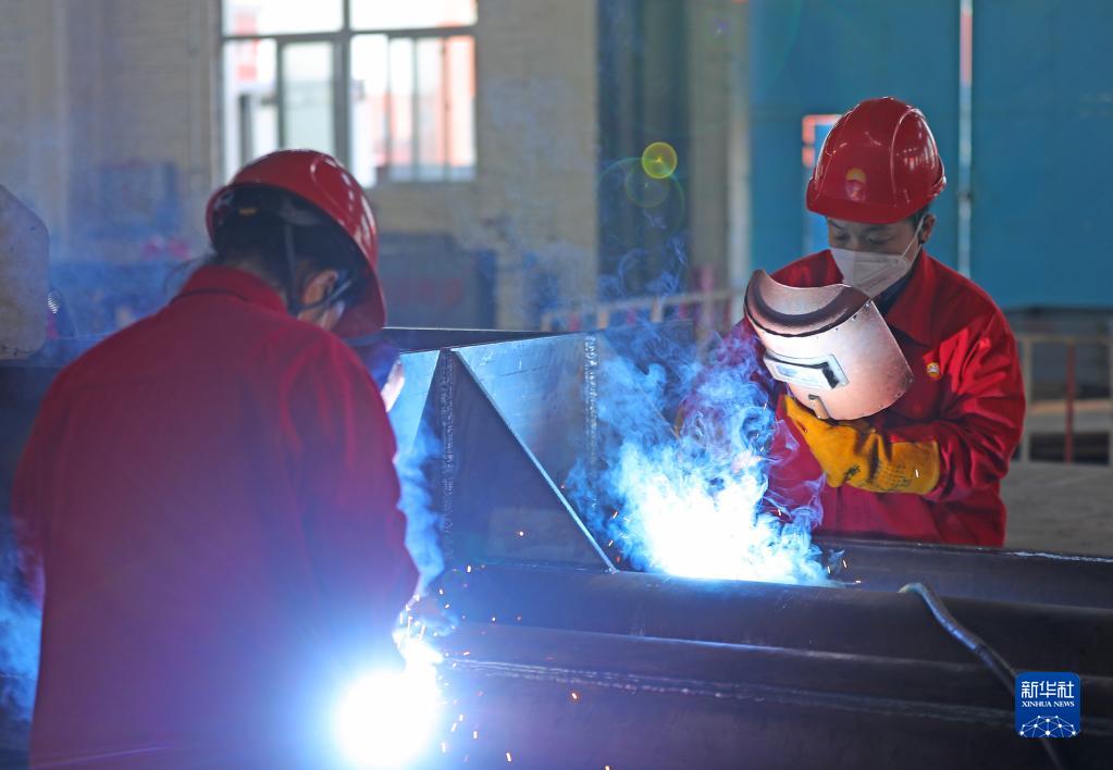 2月27日,女子焊工班成員在焊接車間作業。新華社記者 楊青 攝