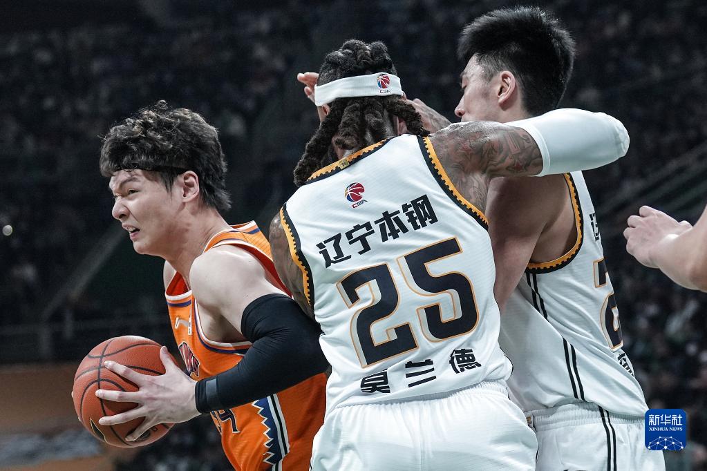 3月8日,上海久事隊球員王哲林(左)在比賽中帶球突破。新華社記者 潘昱龍 攝