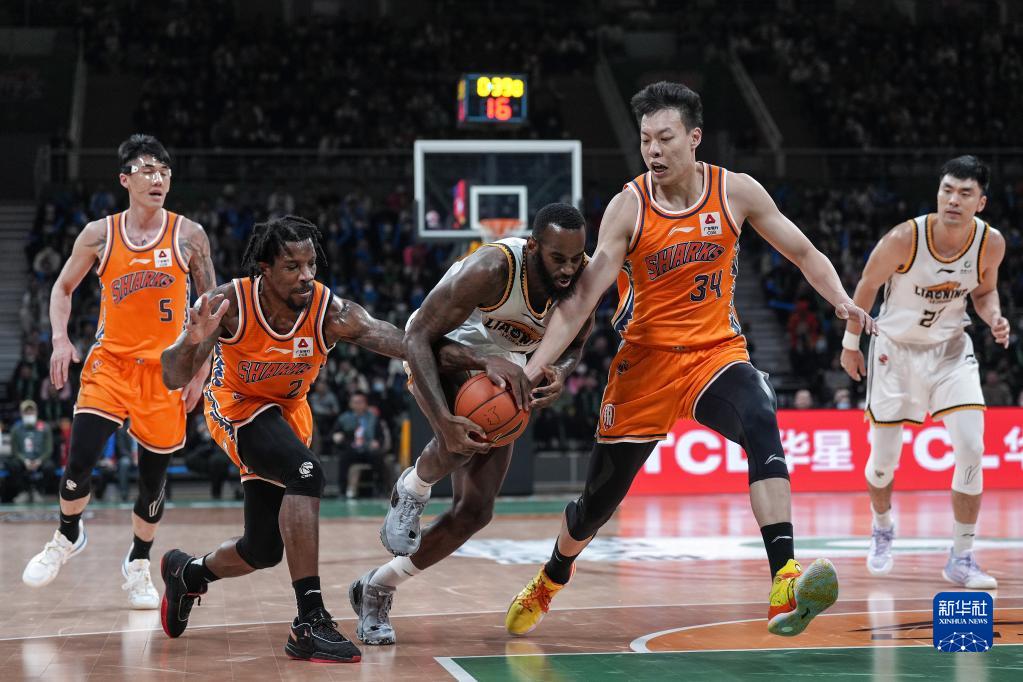3月8日,遼寧本鋼隊球員桑普森(中)在比賽中帶球突破。新華社記者 潘昱龍 攝