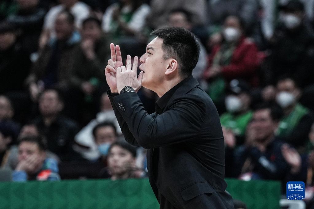 3月8日,遼寧本鋼隊主教練楊鳴在場邊指揮。新華社記者 潘昱龍 攝