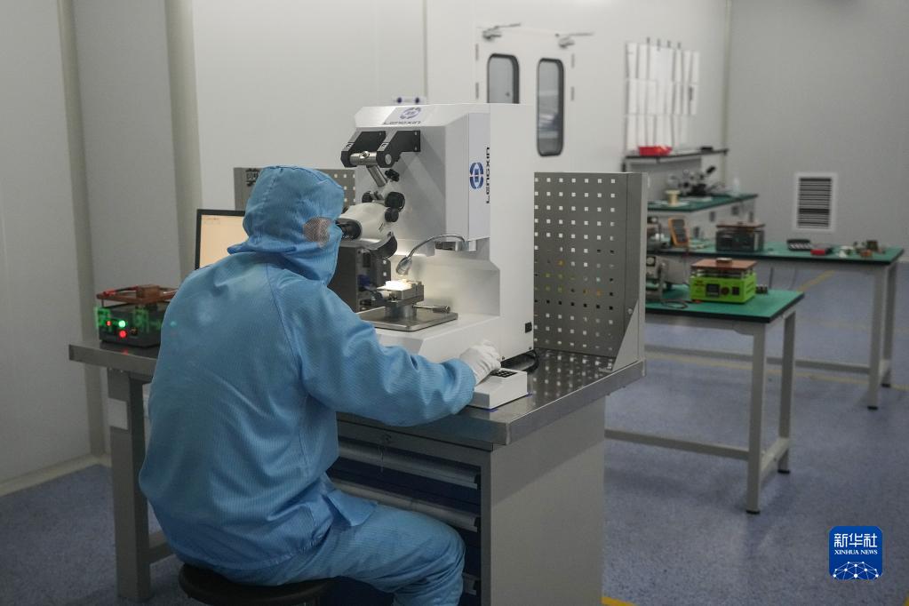 3月24日,遼寧冷芯半導體科技有限公司科研人員對芯片產品進行檢測。新華社記者 潘昱龍 攝