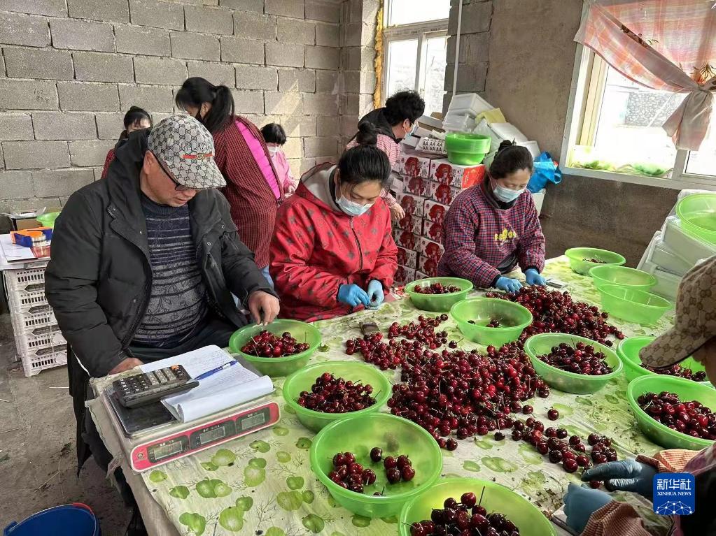 每天凌晨采摘的櫻桃,經分揀后通過冷鏈運輸發往全國。(受訪者供圖)