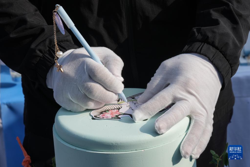 逝者家屬在紙鳶上寫下離別的思念。新華社記者潘昱龍 攝