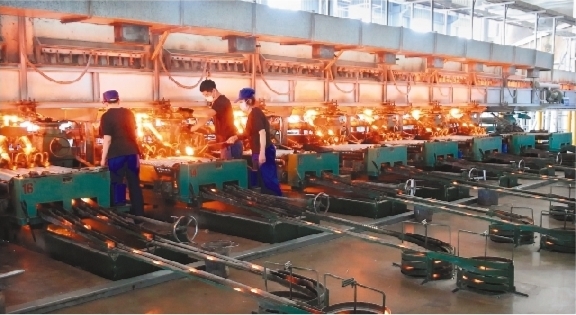 朝陽建平經濟開發區企業北京順運通鐵路車輛配件制造有限責任公司工人正在生產線上忙碌。